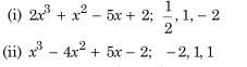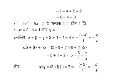 सत्यापित कीजिए कि निम्न त्रिघात बहुपदों के साथ दी गई संख्याएँ उसकी शून्यक हैं। प्रत्येक स्थिति में शून्यकों और गुणांकों के बीच के संबंध को भी सत्यापित कीजिए।