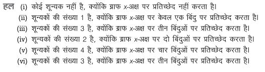 किसी बहुपद p(x) के लिए, y= p(x) का ग्राफ नीचे चित्र (आकृति) में दिया है। प्रत्येक स्थिति में, p(x) के शून्यकों की संख्या ज्ञात कीजिए।