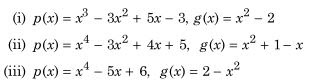 विभाजन एल्गोरिथ्म प्रयोग करके, निम्न में p(x) को g(x) से भाग देने पर भागफल तथा शेषफल ज्ञात कीजिए।
