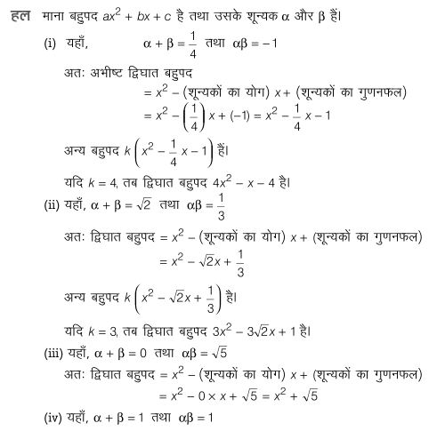 निम्न द्विघात बहुपदों के शून्यक ज्ञात कीजिए और शून्यकों तथा गुणांकों के बीच संबंध की सत्यता की जाँच कीजिए।
