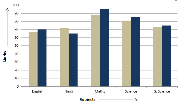 English = 70 – 67 = 3, Hindi = 65 – 72 = -7, Maths = 95 – 88 = 7, Science = 85 – 81 = 4, S. Science = 75 – 73 = 2