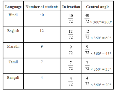 (Hint: for 540 marks, the central angle = 360°. So, for 105 marks, what is the central angle?)