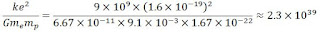 The ratio signify that the Electrostatic force is much larger than gravitational force.Â