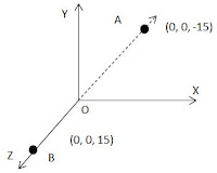 = −2.5 × 10−7 C located at points A: (0, 0, − 15 cm) and B: (0, 0, +