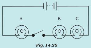 (ii) What will be the order in which the bulbs A, B and C will glow when the switch is moved to the ‘ON’ position?