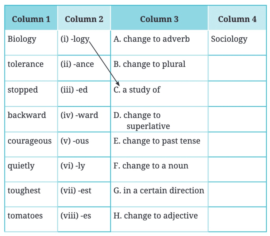 Q1. Now, divide the following words from the text as root words and suffixes. Check your answer with the teacher.