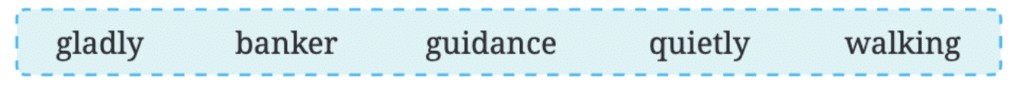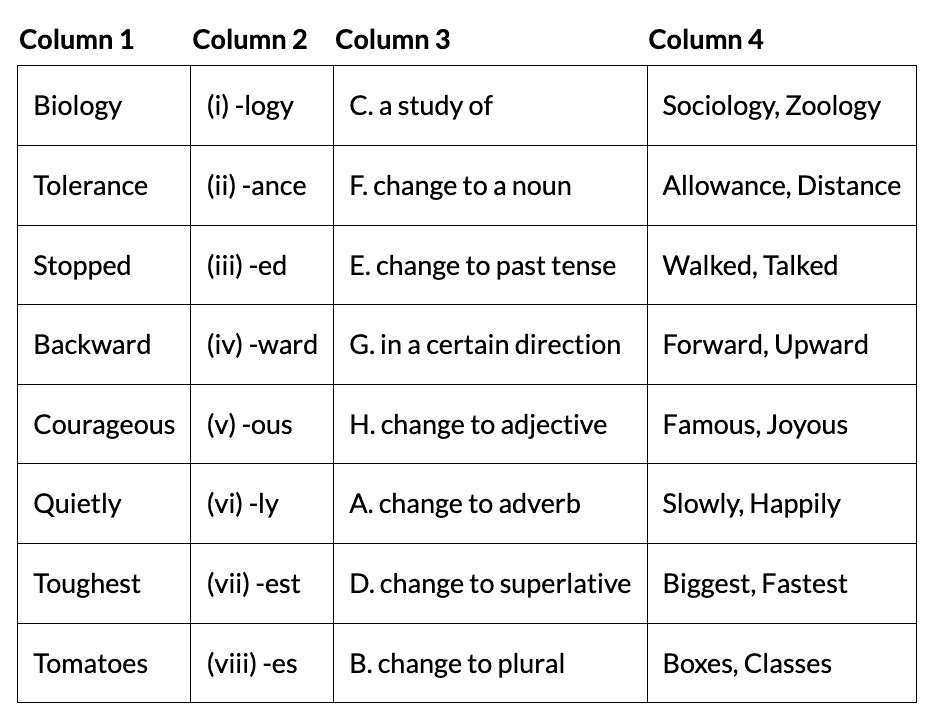 The given words are made by adding word endings like -ous, -ly, -ing, and -ful to the root words humour, hilarious, come, and beauty. Such word endings are called suffixes.