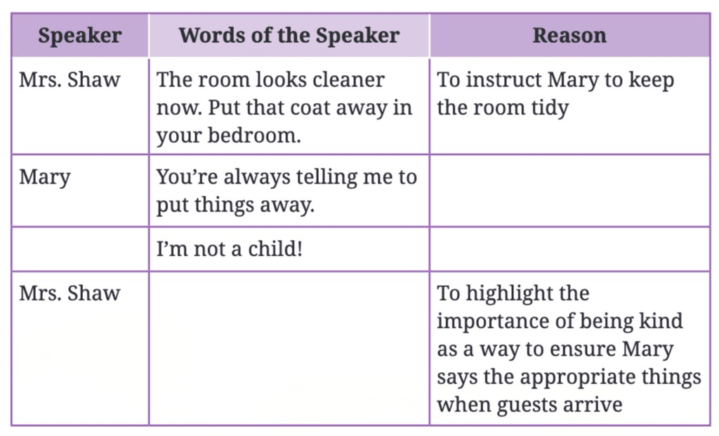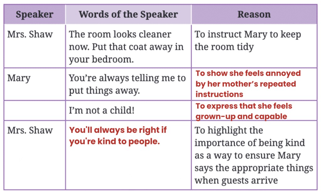 The play shows that polite conversation makes people feel comfortable and happy. Mary’s rude words upset the guests, making the visit awkward. Her mother’s advice to be kind shows that politeness helps build good relationships.20