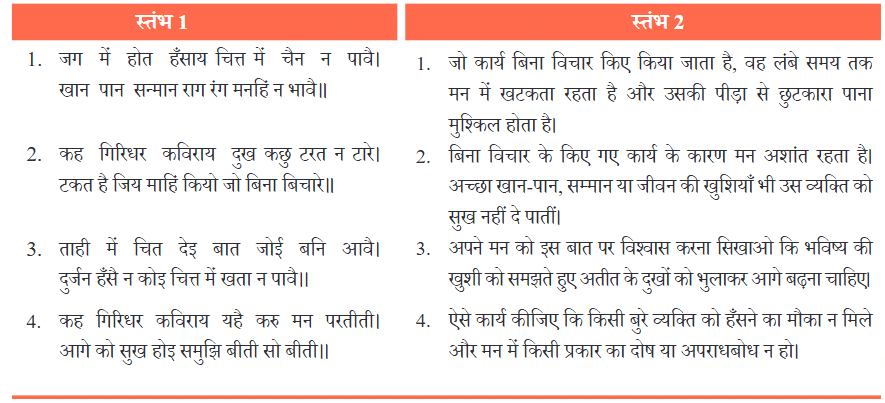 NCERT Solutions for Ch 6 गिरिधर कविराय की कुंडलियाँ Class 7 Hindi