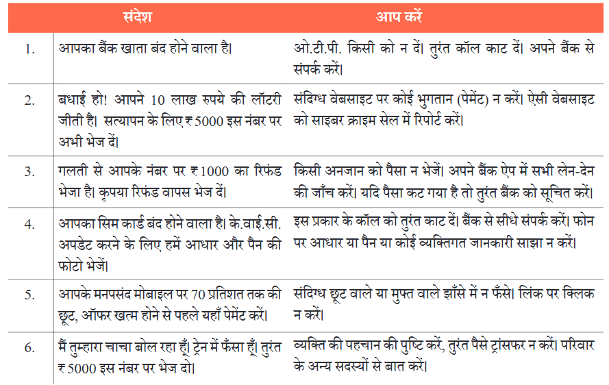 (ख) मान लीजिए कि आपको या आपके किसी परिजन को नीचे दिए गए संदेश मिलते हैं। ऐसे में आप क्या करेंगे?
