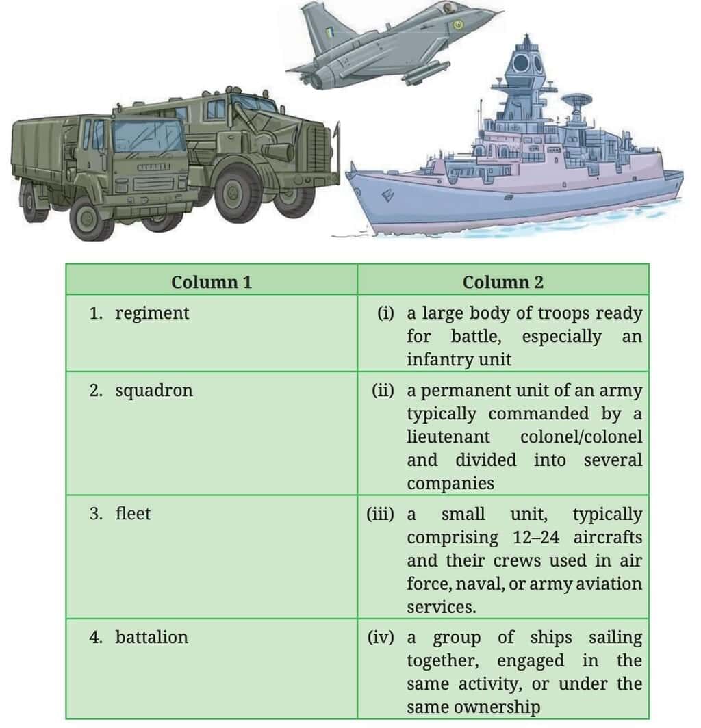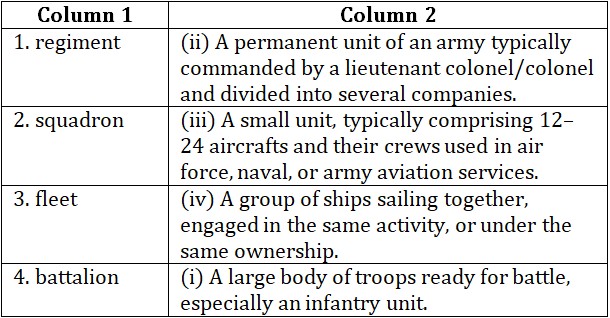 Match the collective nouns in Column 1 to their meanings in Column 2.