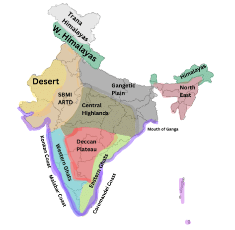 India is called a ‘mini-continent’ because of its vast geographical diversity. It has all types of landforms, including mountains, plateaus, deserts, and coastlines, which are usually found across different continents. For example: