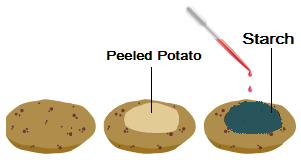 Once the leaves make glucose, it travels through the plant to other parts, like the potato, through special tubes called phloem. The potato acts like a storage place where the glucose is turned into starch and stored for later use, which is why when you test a potato with iodine, you see a blue-black color, showing the presence of starch.