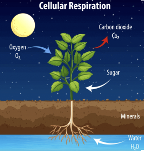 • Respiration is the process where plants and animals break down glucose to release energy, consuming oxygen and releasing carbon dioxide. This helps maintain oxygen levels and provides carbon dioxide for plants to use in photosynthesis.