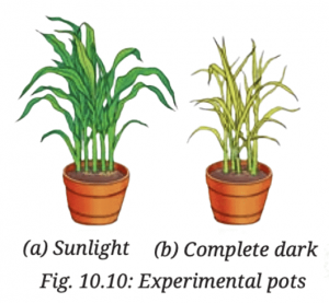 Q6: Krishna set-up an experiment with two potted plants of same size and placed one of them in sunlight and the other in a dark room, as shown in Fig. 10.10.