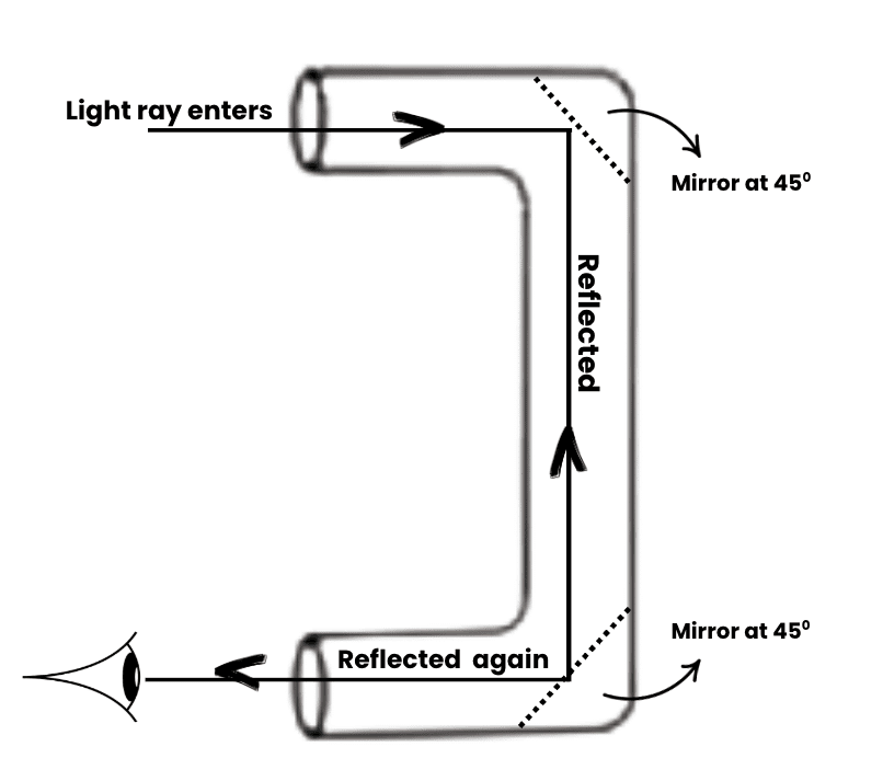 Positioning the mirrors: To construct the periscope, you would place the two plane mirrors at 45-degree angles inside the tube.