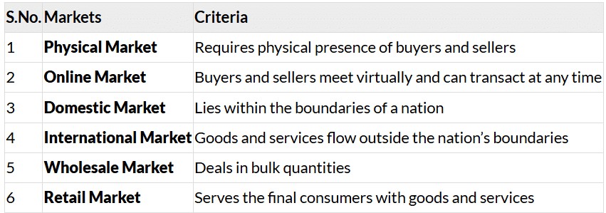 • Physical or Virtual: Markets can be physical (like local bazaars or malls) where people meet face-to-face to exchange goods, or online (like e-commerce websites) where people can buy goods from the comfort of their home.