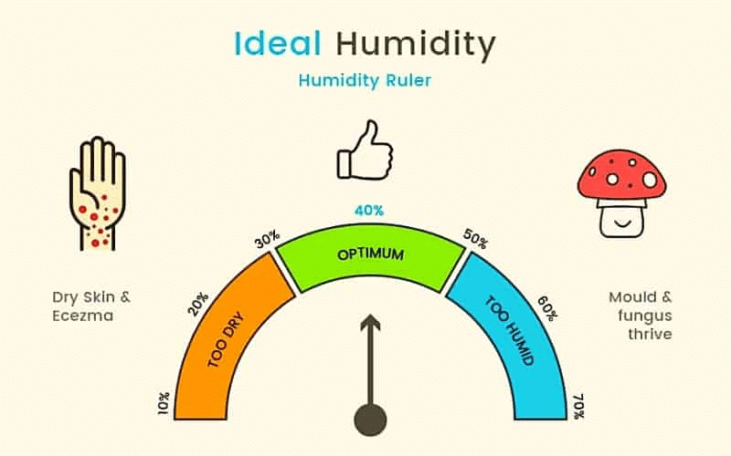 A hygrometer is used to measure the humidity, or the amount of water vapour in the air. It helps us understand how dry or wet the air is, which can affect how we feel in hot or cold weather.
