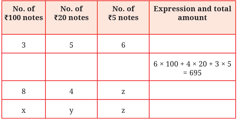 (a) Ritu bought x number of notebooks and y number of pencils. What is the. total amount she has to pay to the shopkeeper, if the cost of each notebook is ₹ 8 and cost of each pencil is ₹ 3?