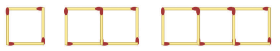 Step 1: To make 1 square, we need 4 matchsticks.Step 2: To make 2 squares, we need 4 + 3 = 7 matchsticks