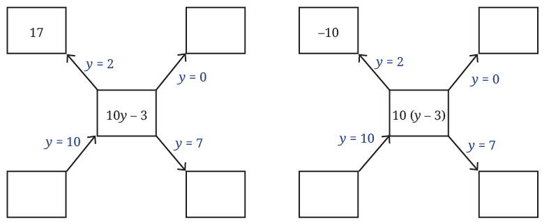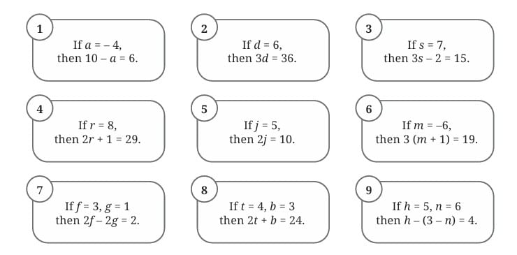 We learnt to write expressions as sums of terms and it became easy for us to read arithmetic expressions. Many times they could have been read in multiple ways and it was confusing. We used swapping (adding two numbers in any order) and grouping (adding numbers by grouping them conveniently) to find easy ways of evaluating expressions. Swapping and grouping terms does not change the value of the expression. We also learnt to use brackets in expressions, including brackets with a negative sign outside. We learnt the distributive property (multiple of a sum is the same as sum of multiples).17