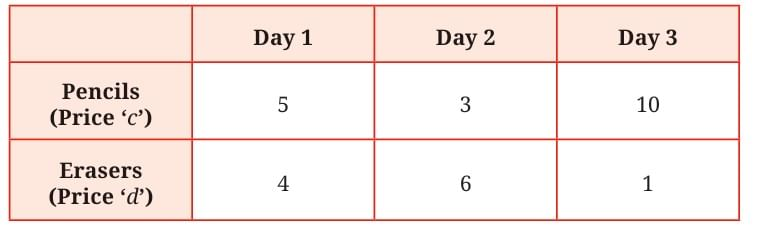(a) A shop sells pens at 8 rupees each and notebooks at 3 rupees each. If x pens and y notebooks are bought, the total cost is 8x + 3y rupees.
