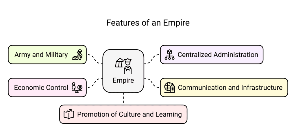 • Promotion of Culture and Learning: Empires encourage art, literature, religion, and education, contributing to the growth of cultural and intellectual life.