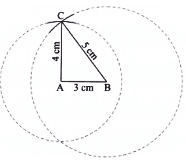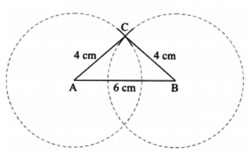 Step 4: The point where both the arcs meet is the required third vertex C.