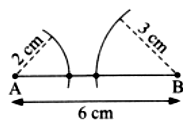 Check triangle inequality: 2 + 3 < 6. The arcs of 2 cm from A and 6 cm from B (base AB = 3 cm) do not intersect, so no triangle is possible.