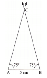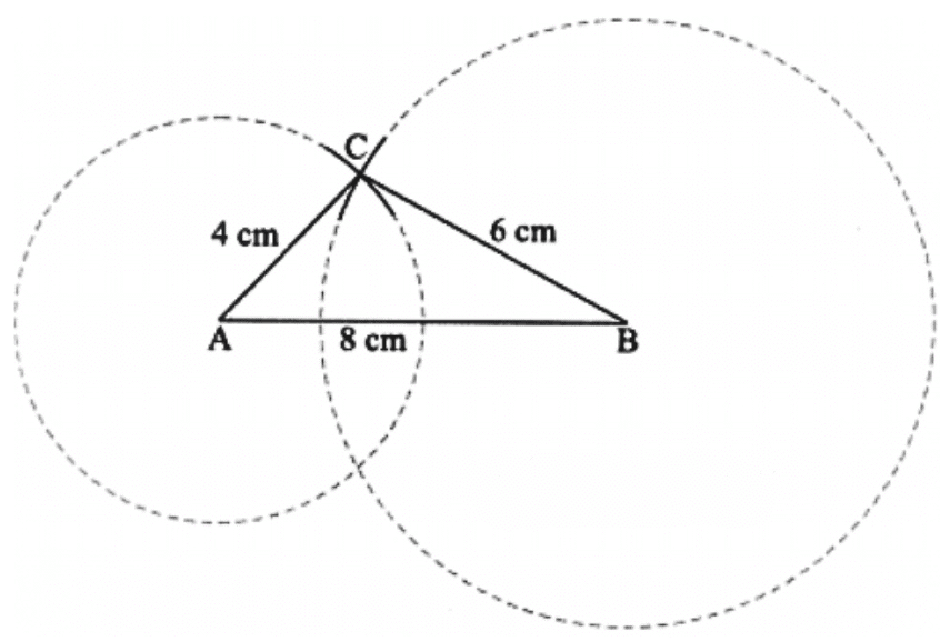 ​Step 4: The point where both the arcs meet is the required third vertex C. Join AC and BC to get ∆ABC.