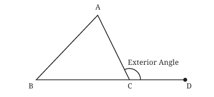 The angle formed between the extension of a side of a triangle and the other side is called an exterior angle of the triangle. In this figure, ∠ACD is an exterior angle.