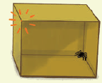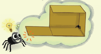 The image in the hint shows how the box can be opened to make it flat. The spider’s path is then shown as a red straight line.
