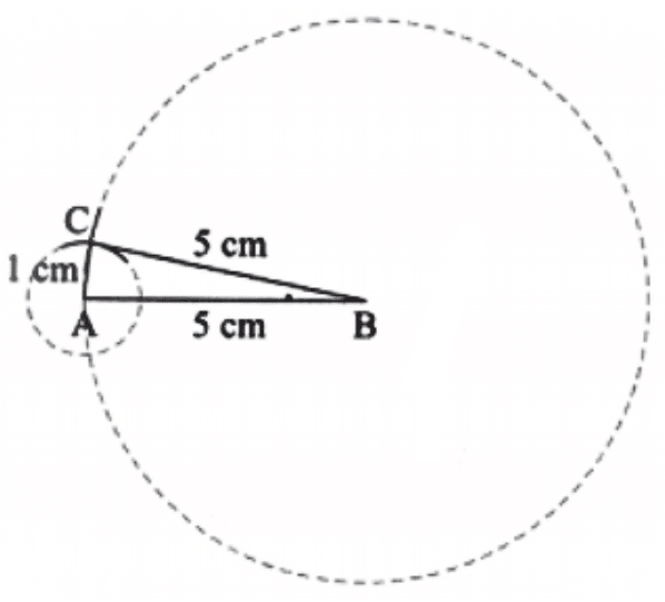 Step 3: Construct another arc of radius 5 cm from B such that it intersects the first arc.