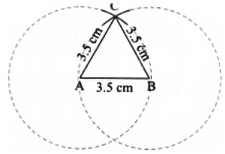 Step 3: Construct another arc of radius 3.5 cm from B.