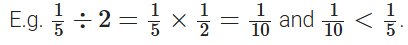 • 1/5 ÷ 1/9 = 1/5 × 9/1 = 9/5 = 1⅘.