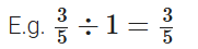 • 2/3 ÷ 2/3 = 2/3 × 3/2 = 6/6 = 1.