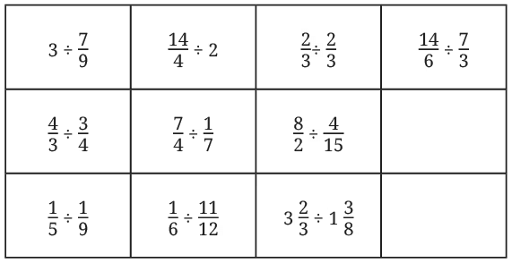 • 3 ÷ 7/9 = 3 × 9/7 = 27/7 = 3⁶/₇.