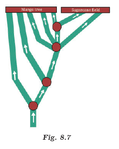 At the third point, ants split into four ways.