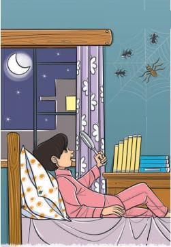 The poem describes the magic of seeing the world through a 1. __________. It reveals how tiny things like 2. __________ and 3. __________ can appear vast and complex. Even a 4. __________ of water can seem like a hive of 5. __________. The poet is impressed at how the spider spins its 6. __________ from its 7. __________. The poem ends with the idea that, through lenses, the 8. __________ could seem within reach.