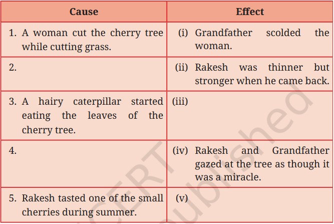 1. Rakesh’s parents lived in a small village in the lower Himalayan slopes where there were no schools. They were keen that Rakesh should receive a proper education. Since his grandfather lived in Mussoorie, a place with schools, they decided to send him there. They wanted him to have better opportunities to study and grow. So, Rakesh began living with his grandfather to attend school.2. Rakesh let the praying-mantis remain on the branch of the cherry tree because he saw it as a harmless and perhaps even welcome visitor. It was the first insect he noticed on the tree after it had started growing well. He didn’t feel the need to remove it since it wasn’t causing any damage. His gentle attitude showed his growing care and respect for the tree and its ecosystem. He understood the tree was now a small part of nature.