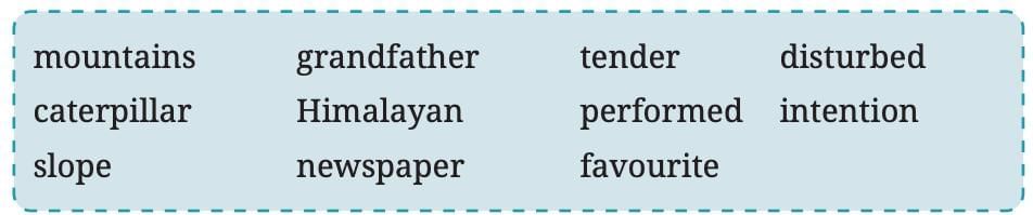 1. mountains – 2 syllables2. grandfather – 3 syllables