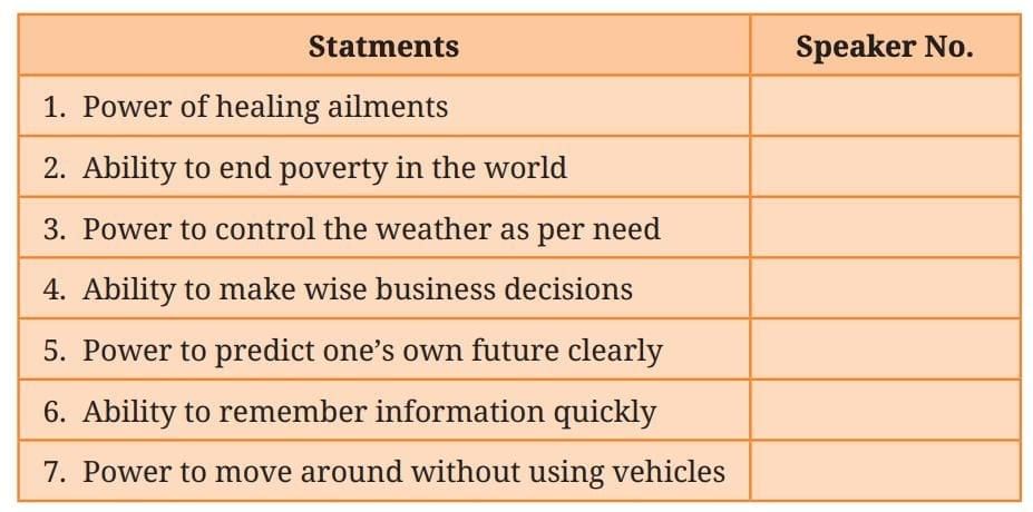 Speaker (ii): I think having the power to learn instantly would be amazing! Exams would be easy, and I’d have more time for activities I enjoy, like playing cricket. If I could remember everything, it would make life so much easier!