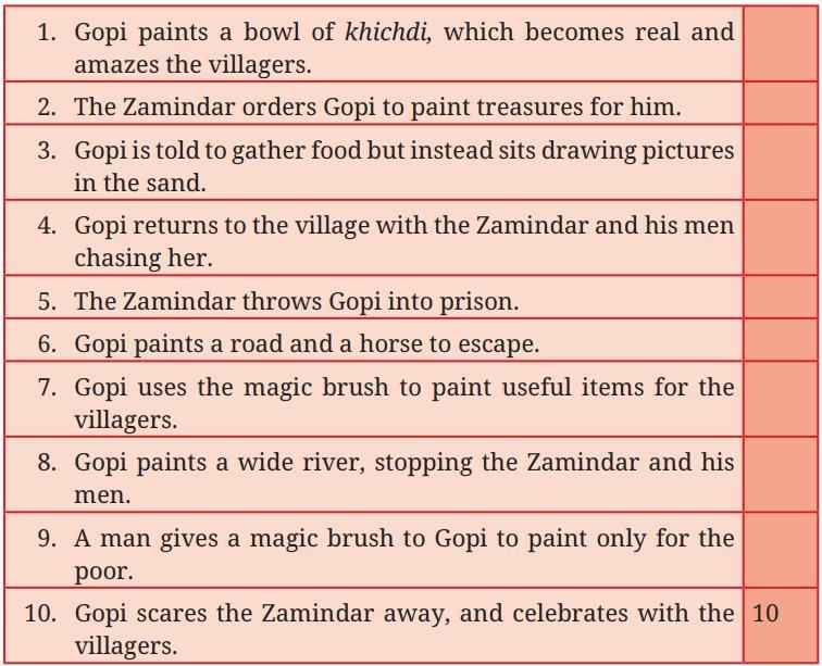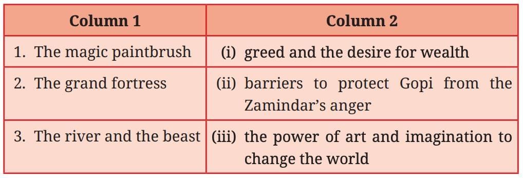1. Gopi was asked by the man to use the magic brush for the good of society. She knew that the magic brush should be used for the poor and the needy and not to fulfil the greedy and selfish wishes of the rich. The Zamindar was rich and cruel; he wanted to misuse the magic brush. Therefore, Gopi made the right decision by refusing to paint for the Zamindar.