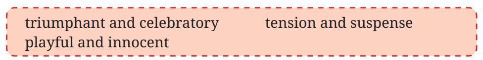 The tone of the poem shifts throughout, reflecting the different moods of the story. Initially, the tone is 1. _________________ as Gopi uses her imagination to draw in the sand, and later when the Zamindar enters the story, the tone shifts to one of 2. _________________. In the final part of the poem, the tone becomes 3. _________________ as Gopi escapes, the Zamindar is defeated, and the villagers rejoice.