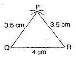To construct: ΔPQR where PQ = 3.5 cm, QR = 4 cm and PR = 3.5 cm