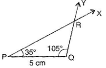 To construct: ΔPQR wherem∠P = 35o, m∠Q = 105o and PQ = 5 cm.