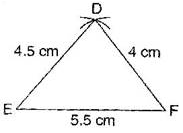 To construct:Â A triangle DEF whose sides are DE = 4.5 cm, EF = 5.5 cm and DF = 4 cm.