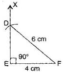To construct: A right angled triangle DEF where DF = 6 cm and EF = 4 cm