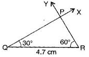 To construct: ΔPQR where m∠Q = 30∘,m∠R = 60∘ and QR = 4.7 cm.