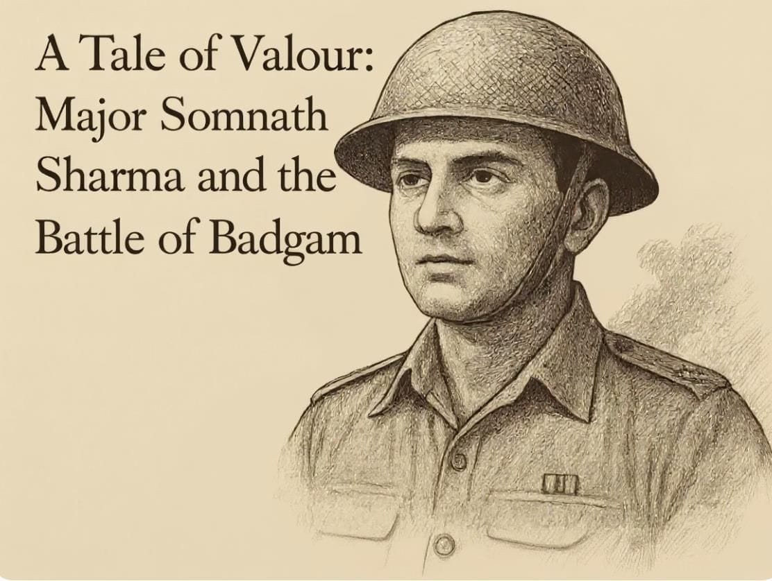 On 31 October 1947, D Company of the 4th Kumaon Regiment, led by Major Somnath Sharma, also landed in Srinagar. At that time, Major Somnath’s left arm was in plaster, but he insisted on joining his men. He said, “I know my men better than anyone else, and if they are going into action, they are not going in without me.” These words showed his deep love, commitment, and duty towards his soldiers.'